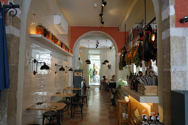 Logo à entrada encontra-se a Mercearia onde podemos comprar diversas iguarias que dividem o espaço com livros, aventais e outros acessórios dignos de um verdadeiro chef.
