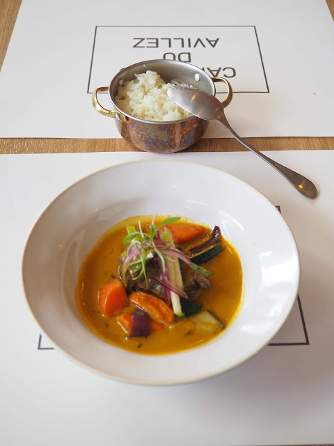 Como opção de carne escolhemos a Vitela de comer à colher com molho de caril que vem igualmente acompanhada de arroz thai. Fiquei com muita vontade de experimentar também a Moqueca de corvina e camarão mas ficará para uma próxima visita!